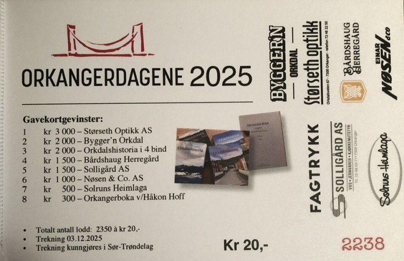 Alle lodd ble solgt og trekningen er gjort på lensmannskontoret på Orkanger 26.11.2025.